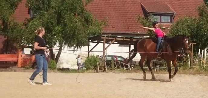 Bei uns lernt der Reiter in der Grundausbildung sich den rhythmischen Bewegungen des Pferdes anzupassen. Durch gezielte Übungen werden hier nicht nur Verspannungen gelöst, sondern auch die Muskulatur gestärkt, welche im Alltag durch Haltungsschäden zu gesundheitlichen Problemen führen. Reiten trainiert den gesamten Körper! Die Grundausbildung hat höchste Priorität bei uns, nur wer diese kennengelernt hat und umsetzen kann, wird lange Spaß mit einem gesunden Pferd haben.